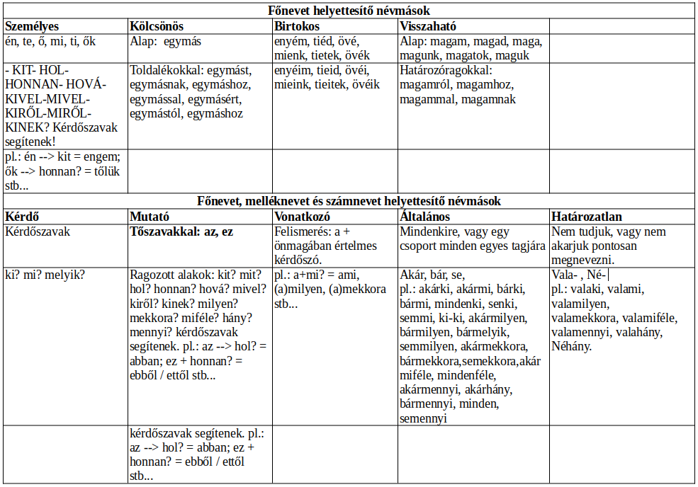 - A névmás helyettesítő szófaj. Átveszik a helyettesített szó jelentését.