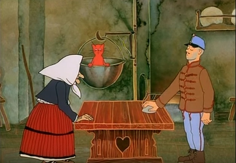 A legény bedobta a kolbászdarabokat a vízbe, és csakhamar elkészült a leves. Akkor levette a tűzről, tarisznyájából kanalat horgászott elő, leült, és jóízűen falatozni kezdett. Közben nagyokat harapott a kenyérből. Olyan jóízűen falatozott, hogy csakhamar kiürült a fazék, csak a kő maradt az alján.